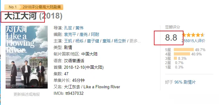《大江大河》系列三部在豆瓣评分均在8分以上,并且第三部《大江大河之岁月如歌》,在2024年斩获第十五届“五个一工程”奖和第32届中国电视剧飞天奖“优秀电视剧奖”。