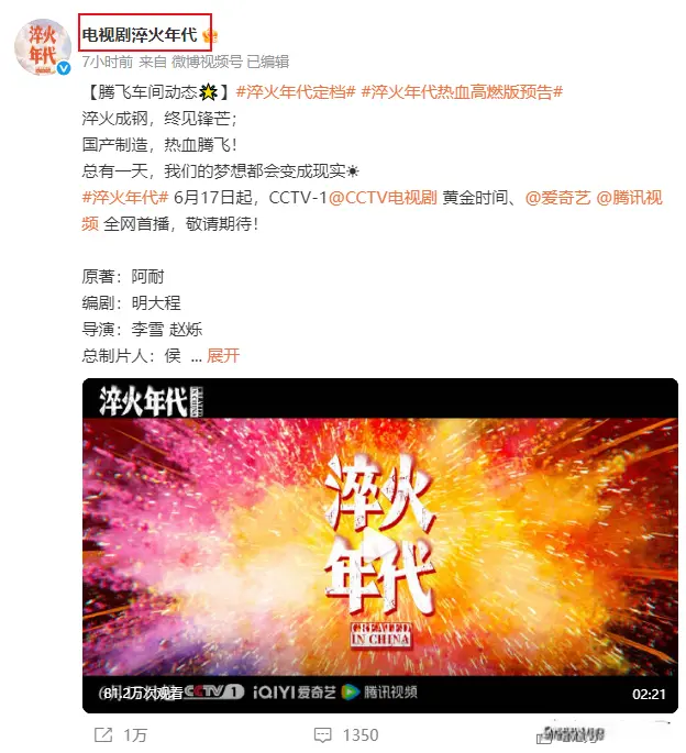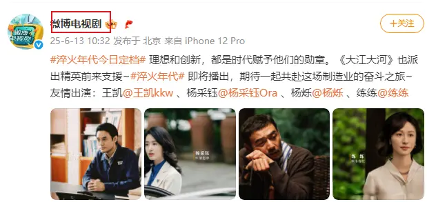 其他由正午阳光出品的大爆剧,《知否》《县委大院》等等官微,也纷纷开始帮《淬火年代》宣传。